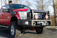 Modern in styling yet distinctively ARB in heritage, these Modular Bumpers are truly innovative and utilize a modular design. Three distinct configurations are available for select Chevrolet, Ford and Ram trucks, allowing for customization to meet individual needs or preferences. The integrated features were designed from the ground up as shown by the unique press formed fog light housings, the ability to mount a variety of winches (up to a Warn 16.5ti) within the bumper and our proprietary matte black Integrit finish powder coat. Modular Bumpers configurations include a base style bumper replacement which is an ideal winch platform. From there, you can select the Sahara style which adds an upright hoop to guard the truck's grille and critical components. Finally, the Full Deluxe Modular Bumper adds wing frames providing the highest level of protection for the truck and occupants.