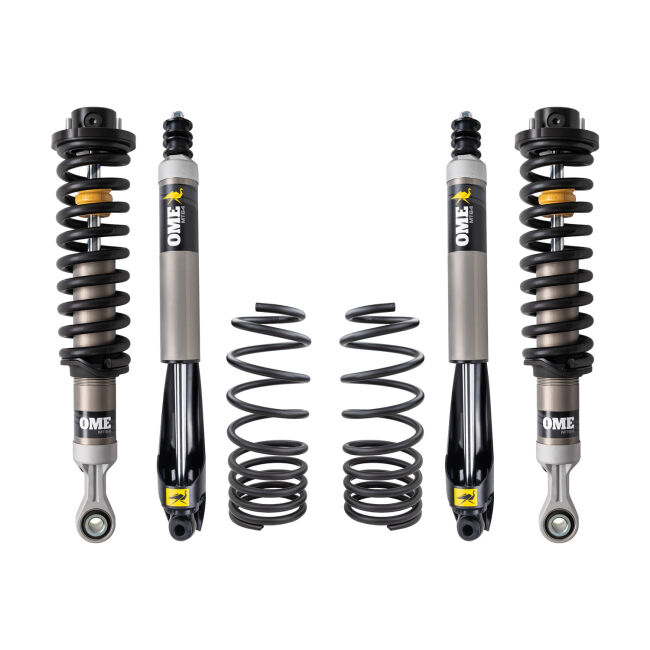 Old Man Emu offers a range of tuned and matched integrated suspension kits to ensure the right suspension is selected for how the vehicle is outfitted and the conditions it will encounter. Old Man Emu suspension systems are designed to enhance ride quality, ride control, load-carrying capacity, and ride height. When building an off-road vehicle, it's best to notate the heavy parts that you plan to add. Heavy components will slowly begin to compress your suspension which results in vehicle sag. Choosing an Old Man Emu integrated suspension kit will avoid sag and ride discomfort as our engineers have tuned and matched suspension components for an range of different weights. This suspension lift kit comes with Old Man Emu MT64 shocks. The MT64 shocks are engineered to handle every challenge, from demanding overlanding trips to the daily commute and every custom build in between, the MT64's huge 2.8in aluminum body and vehicle-specific damping ensure optimal performance across any terrain. This suspension lift kit is tuned and matched for the Toyota Landcruiser to provide 3in of lift in the front, with a weight of 220-330lbs and provide 2in of lift in the rear with a weight of 0lb.