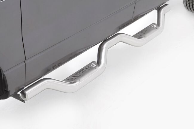 An exclusive patented design, the LUND® Latitude® is a step above the rest. Latitude's powerful looking W-design steps combine strength, beauty and highly functional design with your choice of stainless steel or black powder-coated steel finishes. The perfectly placed steps dip down and allow occupants to comfortably enter and exit the vehicle. Latitude bars feature a contemporary design that runs the full length of the cab and are ideally suited for SUVs and trucks of all sizes. These rugged bars are precisely engineered to fit the exact make, model and year of your vehicle. Latitude comes pre-assembled, with all hardware and installs easily using our no-drill brackets and customized mounting kits.